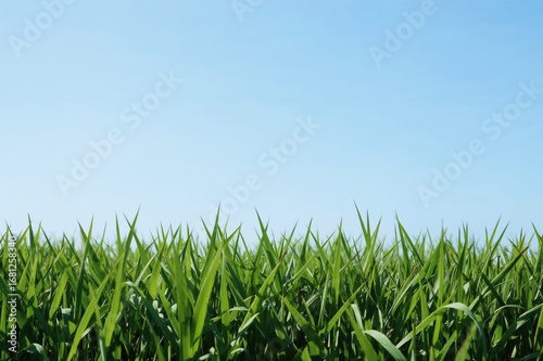 Obraz premium Abstract nature scene featuring green grass and a clear blue sky during warm seasons