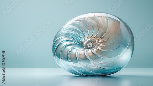 © SAQUEEN, Obraz premium Abstract nautilus shell, light teal