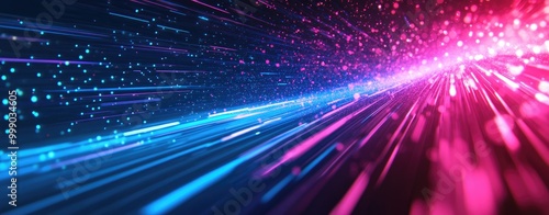 © ShinneProject, Naklejka premium Abstract neon blue and pink light streaks with bokeh effect.
