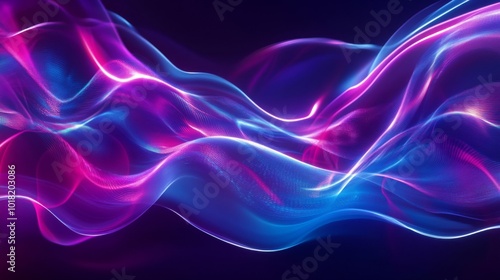 Naklejka premium Abstract Neon Blue and Pink Wavy Lines on Dark Background