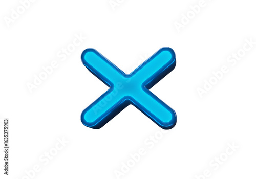 © Patricia, Fototapeta premium Abstract Neon Blue Cross Icon on Transparent Black Background