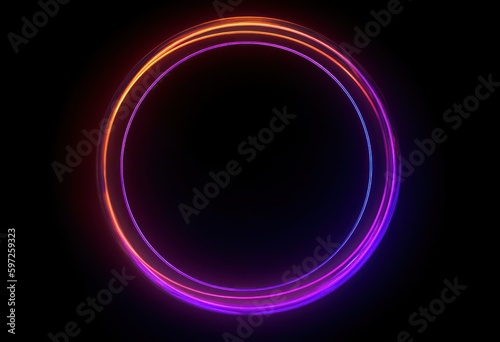 Fototapeta premium Abstract neon circle, red orange, purple glowing border isolated on a dark...
