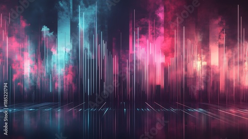 © irawan, Obraz premium Abstract Neon Cityscape Digital Art