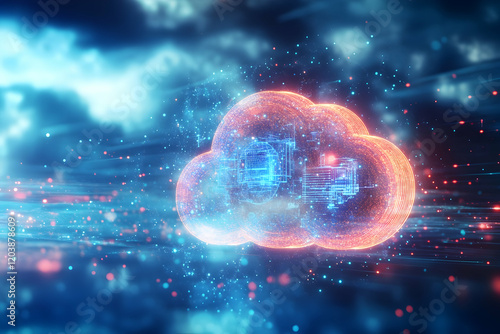 © Svetlana, Obraz premium Abstract Neon Cloud Structure Depicting Digital Data Flow And Information Networks In A Virtual Environment. Generative AI