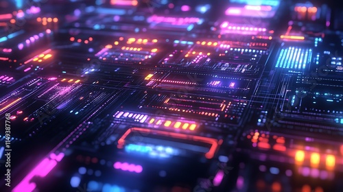 Obraz premium Abstract Neon Digital Circuit Board Display