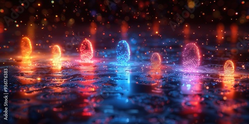 © KHAIDIR, Fototapeta premium Abstract Neon Fingerprints Illuminated by Bright Lights