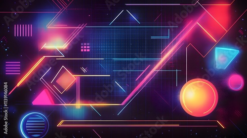 Obraz premium Abstract Neon Geometric Synthwave Design Background