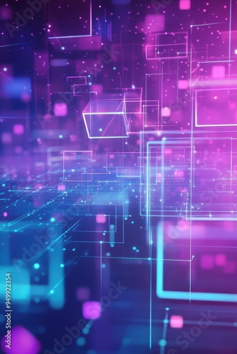 Fototapeta premium Abstract Neon Glow Lines, Digital Network, Technology, Future Concept, Purple, Blue Background.