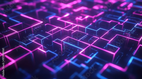 Obraz premium Abstract Neon Glowing Cubes: A Tech and Data Concept