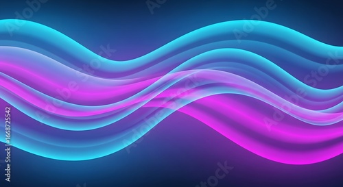 © Ade, Fototapeta premium Abstract neon glowing wave background, vibrant blue and pink colors.