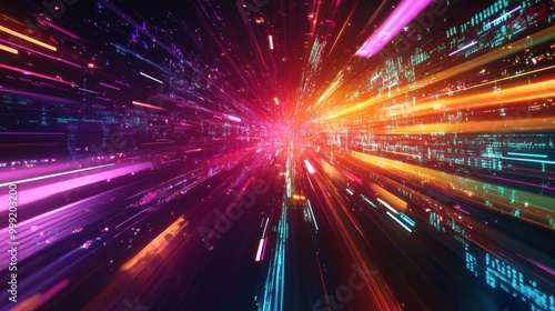 Naklejka premium Abstract Neon Light Streaks Background - Futuristic Digital Art.