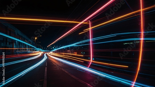 Obraz premium Abstract Neon Light Trails Against a Black Background.