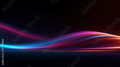 © Taslima, Naklejka premium Abstract neon light trails flowing in a dynamic wave pattern on a dark background