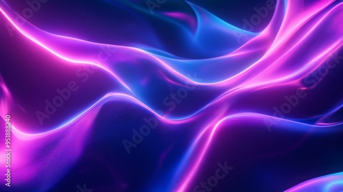 Obraz premium Abstract neon light waves creating a dynamic and fluid backdrop with a deep...