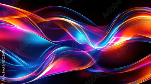 © ProStockGallery, Naklejka premium Abstract Neon Light Waves on Black Background Modern Futuristic Flow