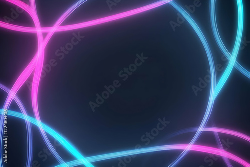 © Siasart Stock, Fototapeta premium Abstract Neon Lights Background Creates a Dynamic and Vibrant Design with Intertwined Glowing Lines in Pink and Blue on Dark Background