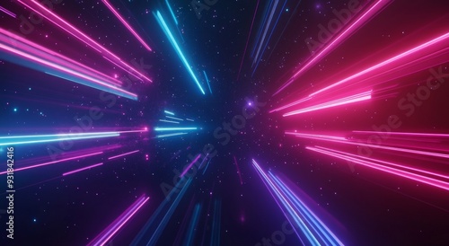 © Ekkarat_Studio, Fototapeta premium Abstract Neon Lights Background Pink and Blue Streaks in Dark Space