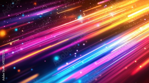 © Narongsag, Fototapeta premium Abstract Neon Lights Background with Glowing Stripes and Bokeh
