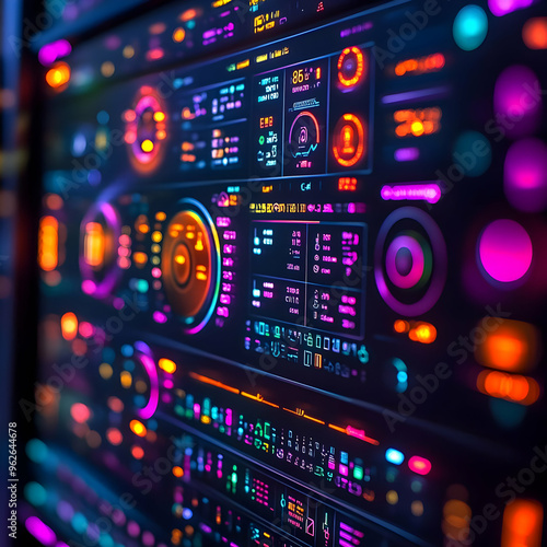 Obraz premium Abstract Neon Lights Digital Panel Interface 3D Illustration