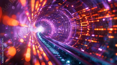 Obraz premium Abstract neon lights into digital technology tunnel