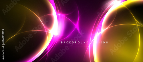Obraz premium Abstract neon lines create vibrant energy. Pink, gold hues dominate dark...