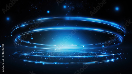 Obraz premium Abstract neon rays and lines on dark science and tech background