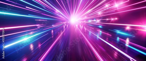 © Kashif 2158, Naklejka premium Abstract neon techno background, rays, glow, futuristic