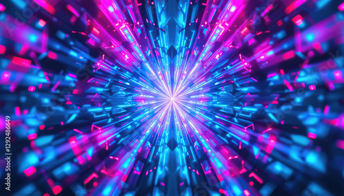 © Rika, Fototapeta premium Abstract Neon Tunnel Background with Pink Blue Light