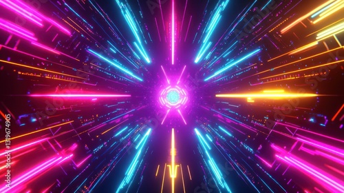 © mas, Naklejka premium Abstract neon tunnel, glowing lines, futuristic