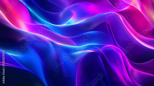 © PouKpm, Obraz premium Abstract Neon Wave Background Vibrant Pink, Blue, and Purple Swirls
