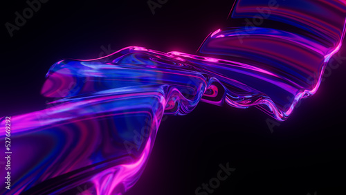 © MIKHAIL, Naklejka premium Abstract Neon Wave Surface. Wavy Color Line. Liquid Multicolored Glowing Curved Wavy Line. Neon Cyberpunk Style. Minimalist Style. 3D Rendering