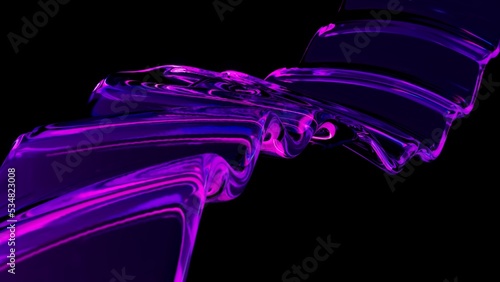 © MIKHAIL, Naklejka premium Abstract Neon Wave Surface. Wavy Color Line. Liquid Purple Glowing Curved Wavy Line. Neon Cyberpunk Style. Minimalist Style. 3D Rendering