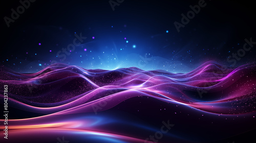 © Paul Peery, Obraz premium Abstract Neon Waves of Blue and Pink on Dark Background
