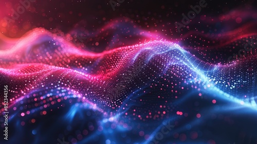 Obraz premium Abstract Neon Waves with Dots in Cosmic Landscape - Futuristic Digital...