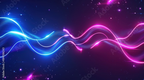 © jongaNU, Obraz premium Abstract Neon Waves with Glittering Background