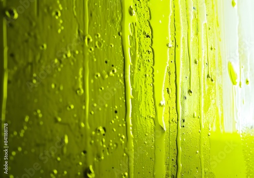 © Eva, Fototapeta premium Abstract Neon Yellow Water Drops Texture