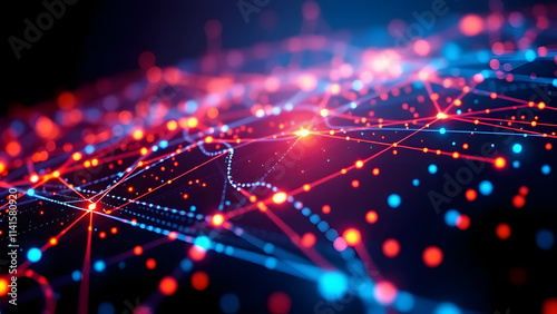 Fototapeta premium Abstract Network: A captivating digital art piece depicting a vibrant and dynamic network of interconnected nodes, representing the complex relationships and connections within a digital landscape.