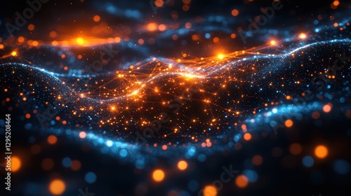 Fototapeta premium Abstract Network Connecting Points with Glowing Orange and Blue Light Effects