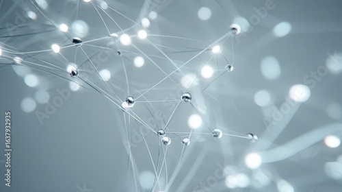 © Generative AI, Obraz premium Abstract Network Connection Background with Glowing Nodes, Perfect for Technology, Science, and Data Visualization