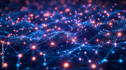 Fototapeta premium Abstract Network Connection: Blue Digital Data Nodes & Lines Background, Futuristic Technology Visualization, Artificial Intelligence