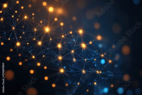 © At My Hat, Fototapeta premium Abstract network connection, glowing nodes and lines. Illustrates global network, data flow, or connectivity.