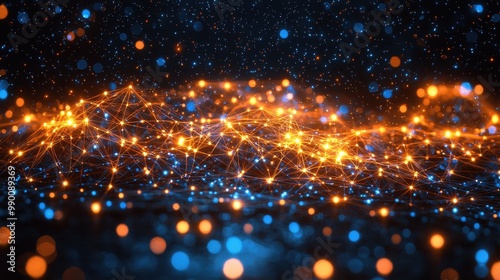 Obraz premium Abstract Network Connection with Glowing Lights and Bokeh Effect
