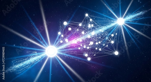 Naklejka premium Abstract Network Connection with Glowing Nodes and Data Streams in a Digital...