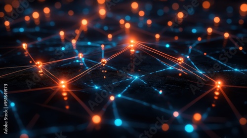 Obraz premium Abstract Network Connection with Glowing Nodes and Lines - Digital Technology...