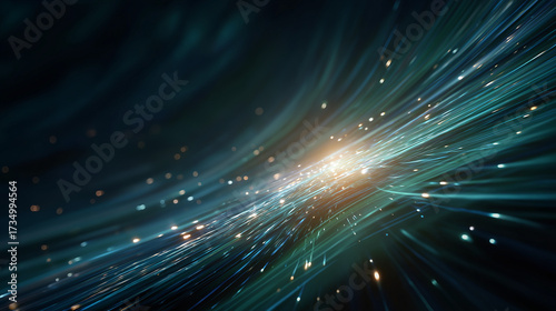 Fototapeta premium Abstract Network Flow: A stunning display of light and energy, with swirling lines and particles creating a dynamic representation of connection and data flow.