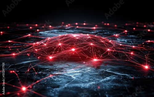 © barber, Obraz premium Abstract network, glowing red lines, dark background