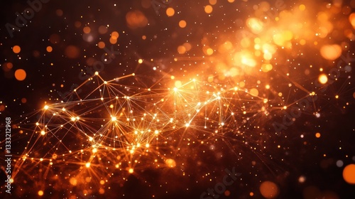 Naklejka premium Abstract network graphic, glowing orange particles, dark background....