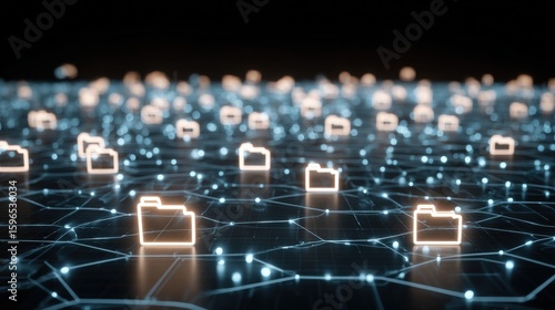 Obraz premium Abstract network grid with files and folders, futuristic software interface, digital document management system, store, search and organize documents, corporate business, paperless office