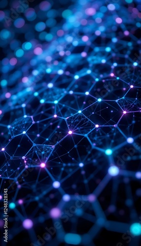 © anomalicreatype, Obraz premium Abstract Network Mesh Background with Glowing Nodes