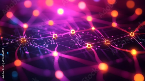 © Phichaphat, Fototapeta premium Abstract Network, Neon Lines, Connected Data, Digital Background